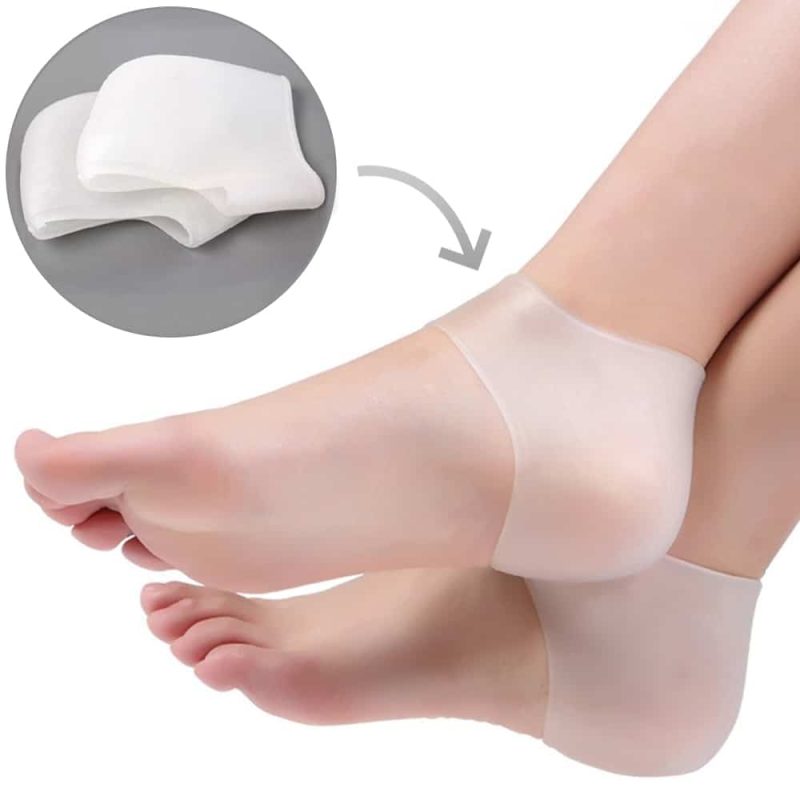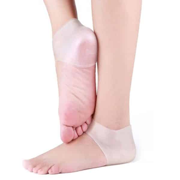Înmoaie-ți picioarele în apă caldă timp de cel puțin 10 minute. Aplică o cremă hidratantă pe piele și pune ciorapul de silicon. Poartă șosete de silicon în timp ce dormi.